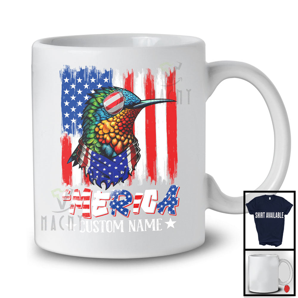 Personalized 'Merica, Proud 4th Of July Custom Name Hummingbird Owner, USA Flag Patriotic T-Shirt