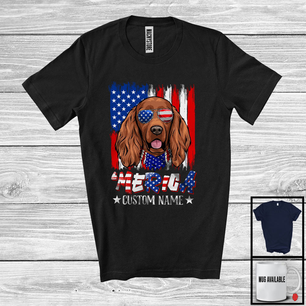 Personalized 'Merica, Proud 4th Of July Custom Name Irish Setter Owner, USA Flag Patriotic T-Shirt