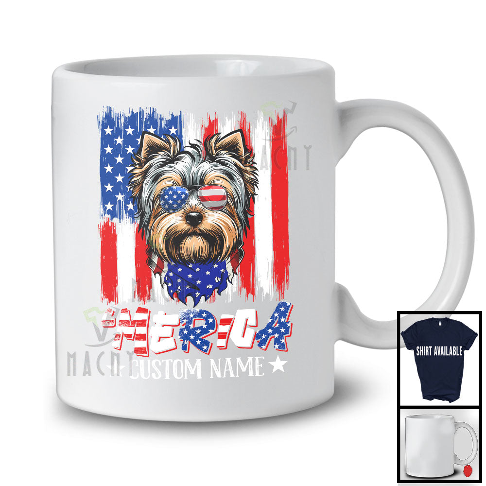 Personalized 'Merica, Proud 4th Of July Custom Name Yorkshire Terrier Owner, USA Flag Patriotic T-Shirt