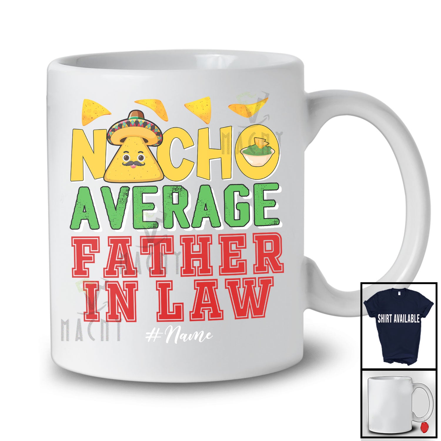 Personalized Nacho Average Father in law; Humorous Father's Day Custom Name Mexican Family; Food T-Shirt. This cotton t-shirt is a durable staple product with a classic fit. One of the most popular items, it has a relaxed style made for everyday and casual wear.