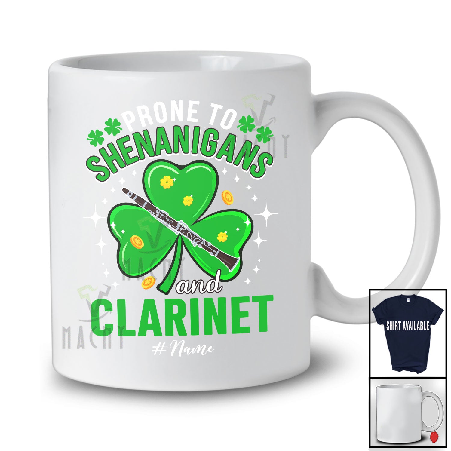 This Personalized Prone To Shenanigans Clarinet; Lovely St. Patrick's Day Custom Name Clarinet Player T-Shirt is great idea gift for your family, friends in this birthday, christmas, mother's day, father's day, patrick's day or any holiday.