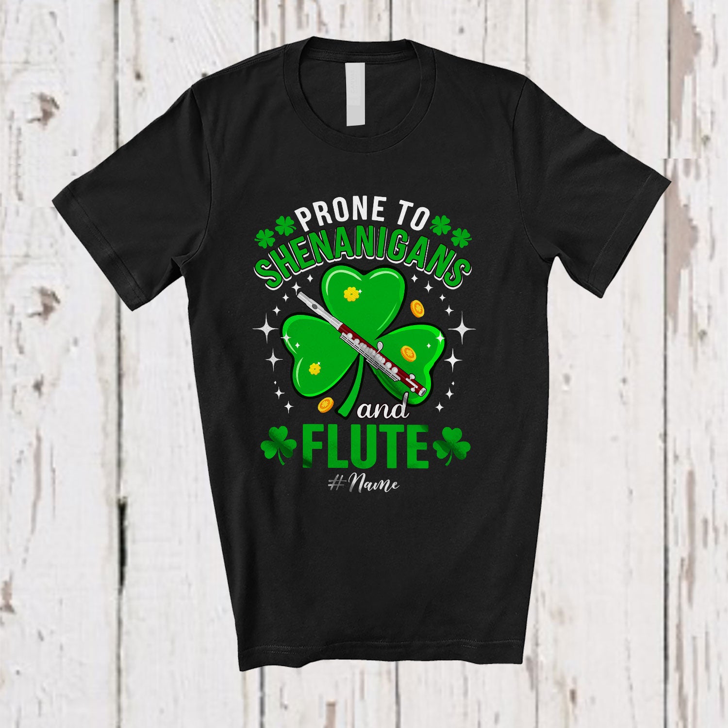 Personalized Prone To Shenanigans Flute; Lovely St. Patrick's Day Custom Name Flute Player T-Shirt