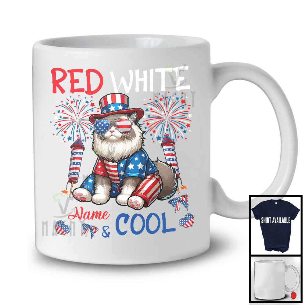 Personalized Red White And Cool, Amazing 4th Of July Cat Custom Name, Fireworks Patriotic T-Shirt. This cotton t-shirt is a durable staple product with a classic fit. One of the most popular items, it has a relaxed style made for everyday and casual wear.