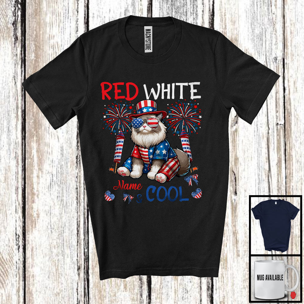 Personalized Red White And Cool, Amazing 4th Of July Cat Custom Name, Fireworks Patriotic T-Shirt