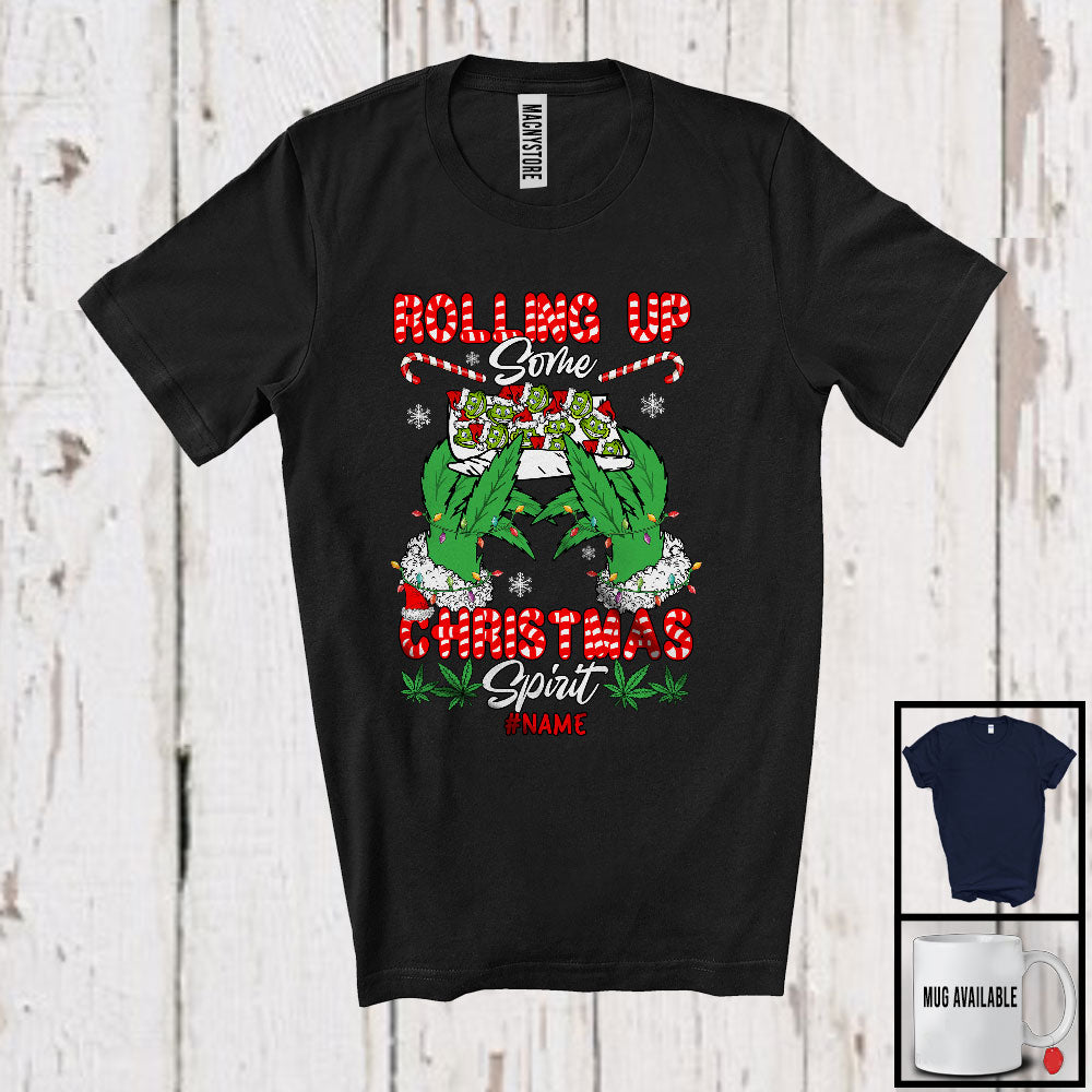 Personalized Rolling Up Some Christmas Spirit; Lovely X-mas Custom Name Stoner Smoker T-Shirt