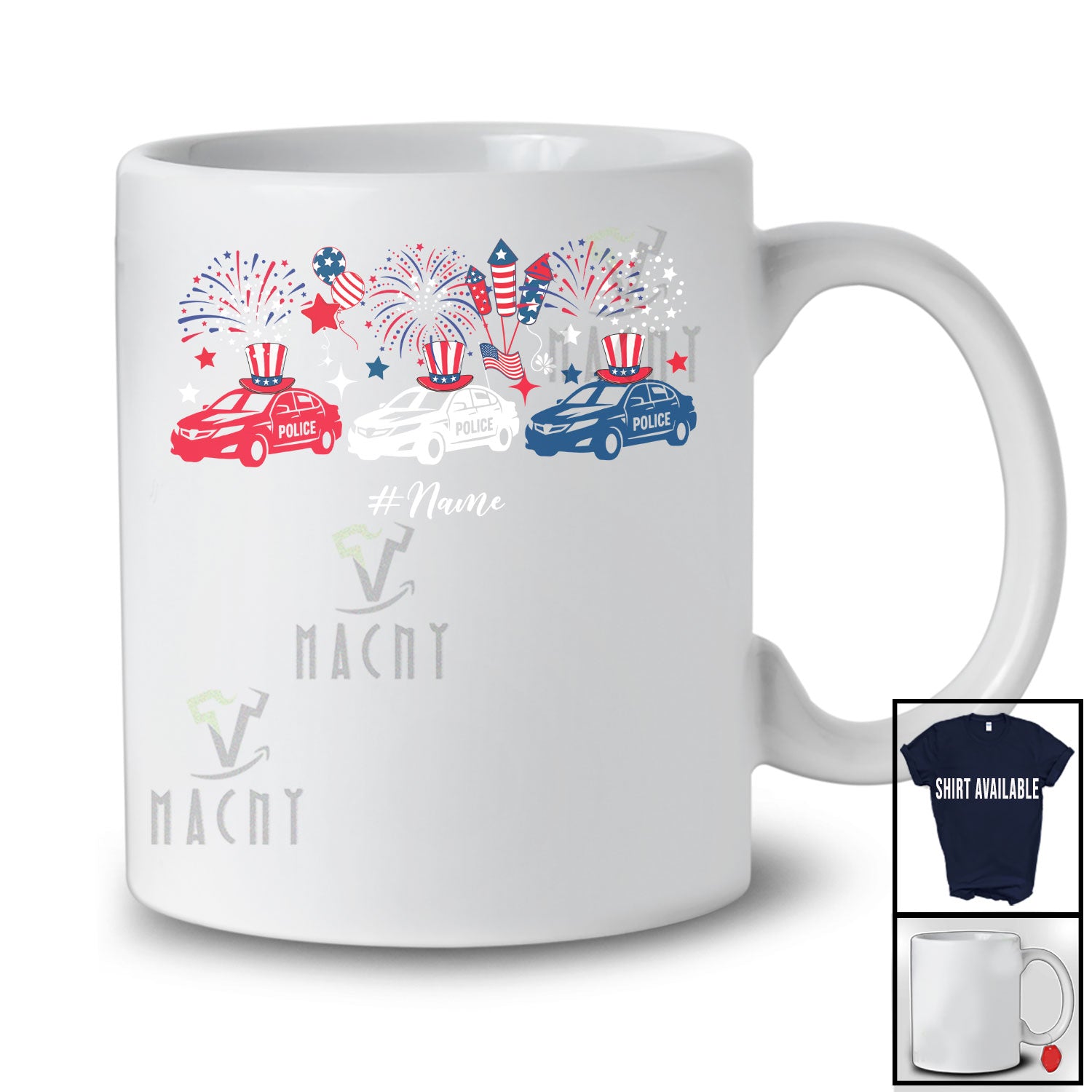 Personalized Three Police Car Fireworks; Joyful 4th Of July Custom Name Police Car Driver; Family T-Shirt. This cotton t-shirt is a durable staple product with a classic fit. One of the most popular items, it has a relaxed style made for everyday and casual wear.