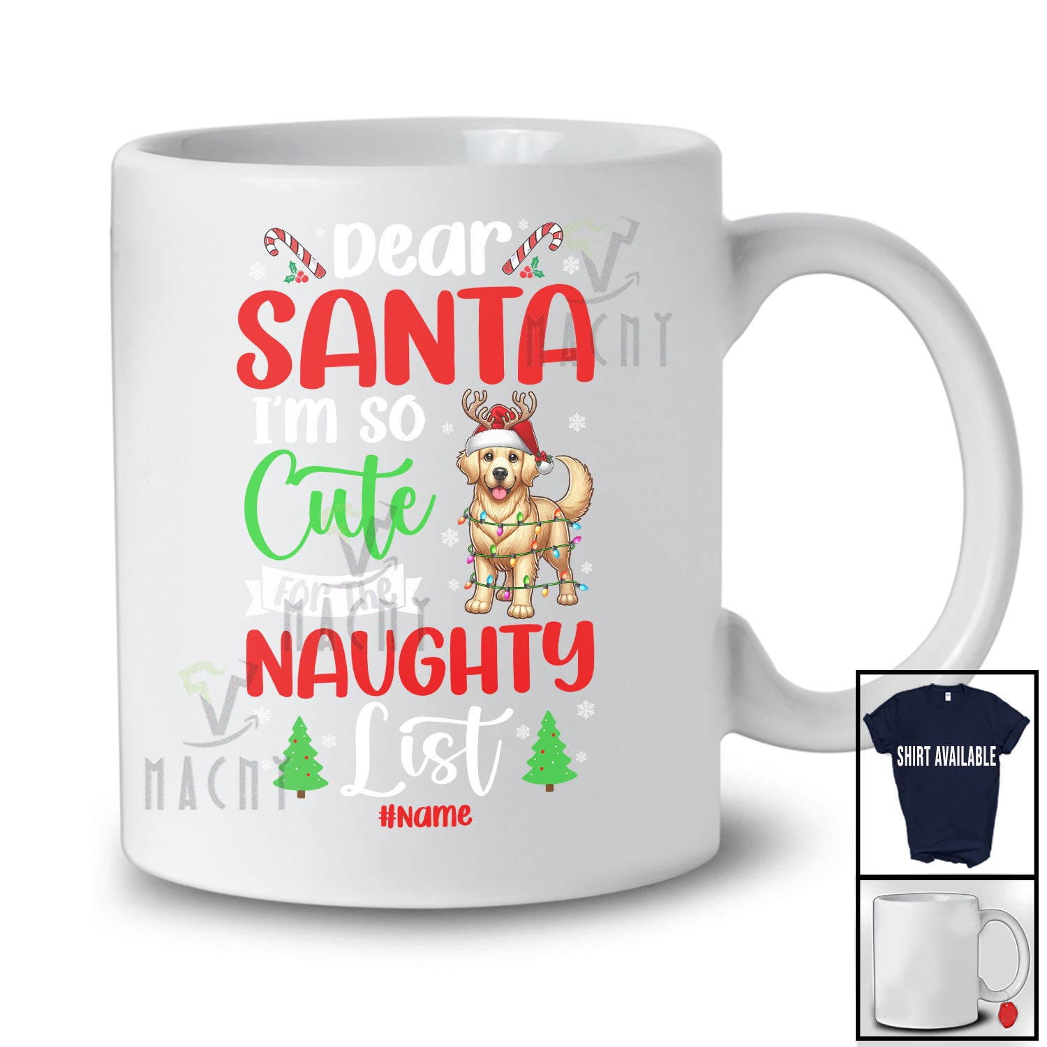 This Personalized Too Cute For Santa's Naughty List; Amusing Christmas Custom Name Golden Retriever T-Shirt is great idea gift for your family, friends in this birthday, christmas, mother's day, father's day, patrick's day or any holiday.