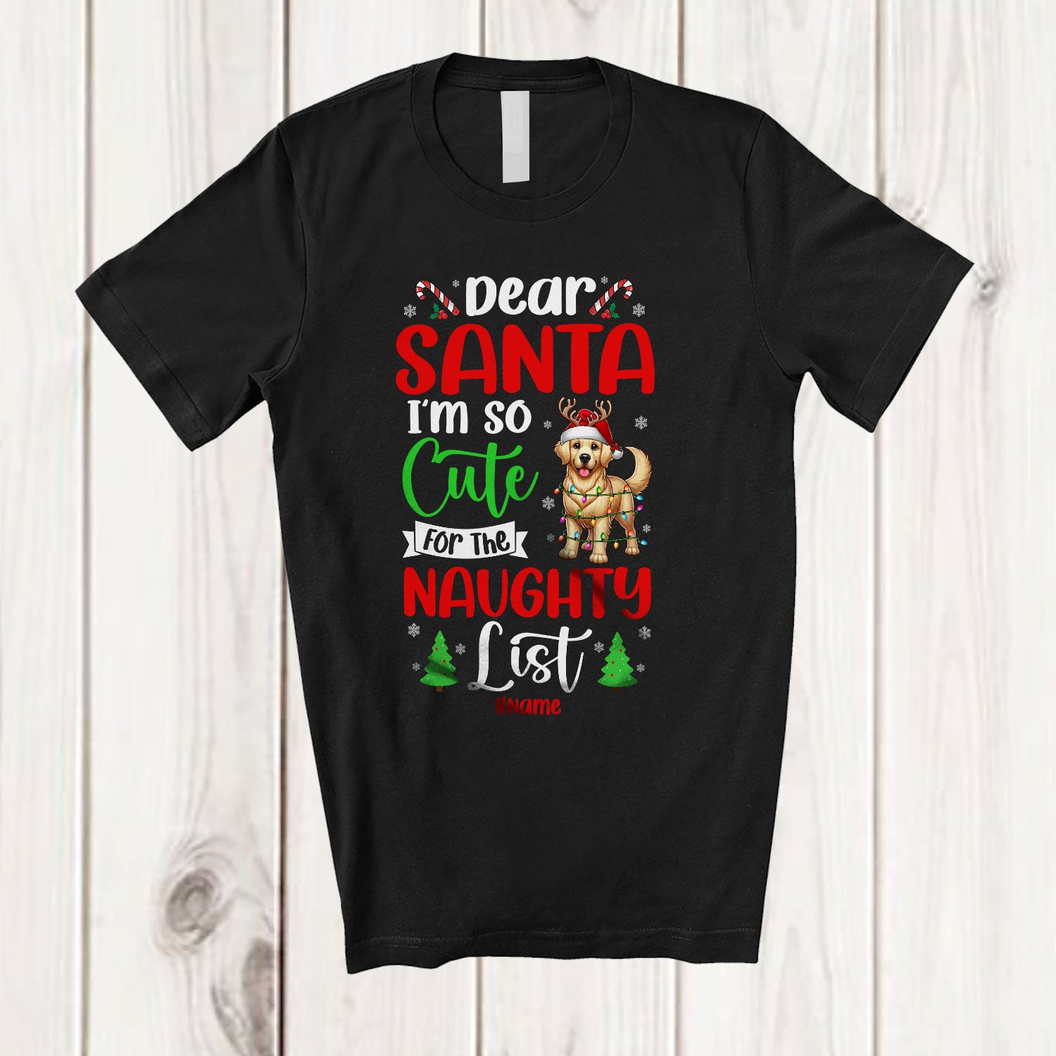 Personalized Too Cute For Santa's Naughty List; Amusing Christmas Custom Name Golden Retriever T-Shirt