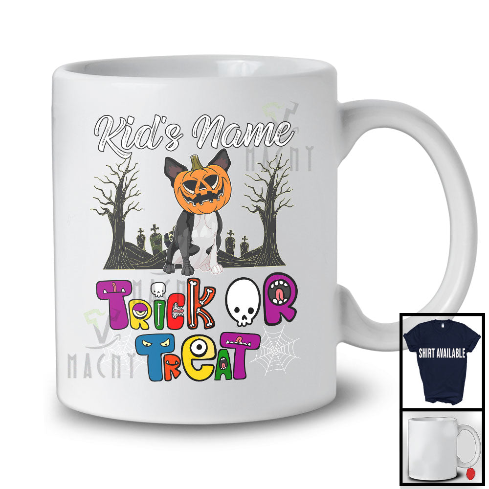 new MacnyStore - Personalized Trick Or Treat, Humorous Halloween Boston Terrier Custom Name, Pumpkin Face T-Shirt – Macnystore