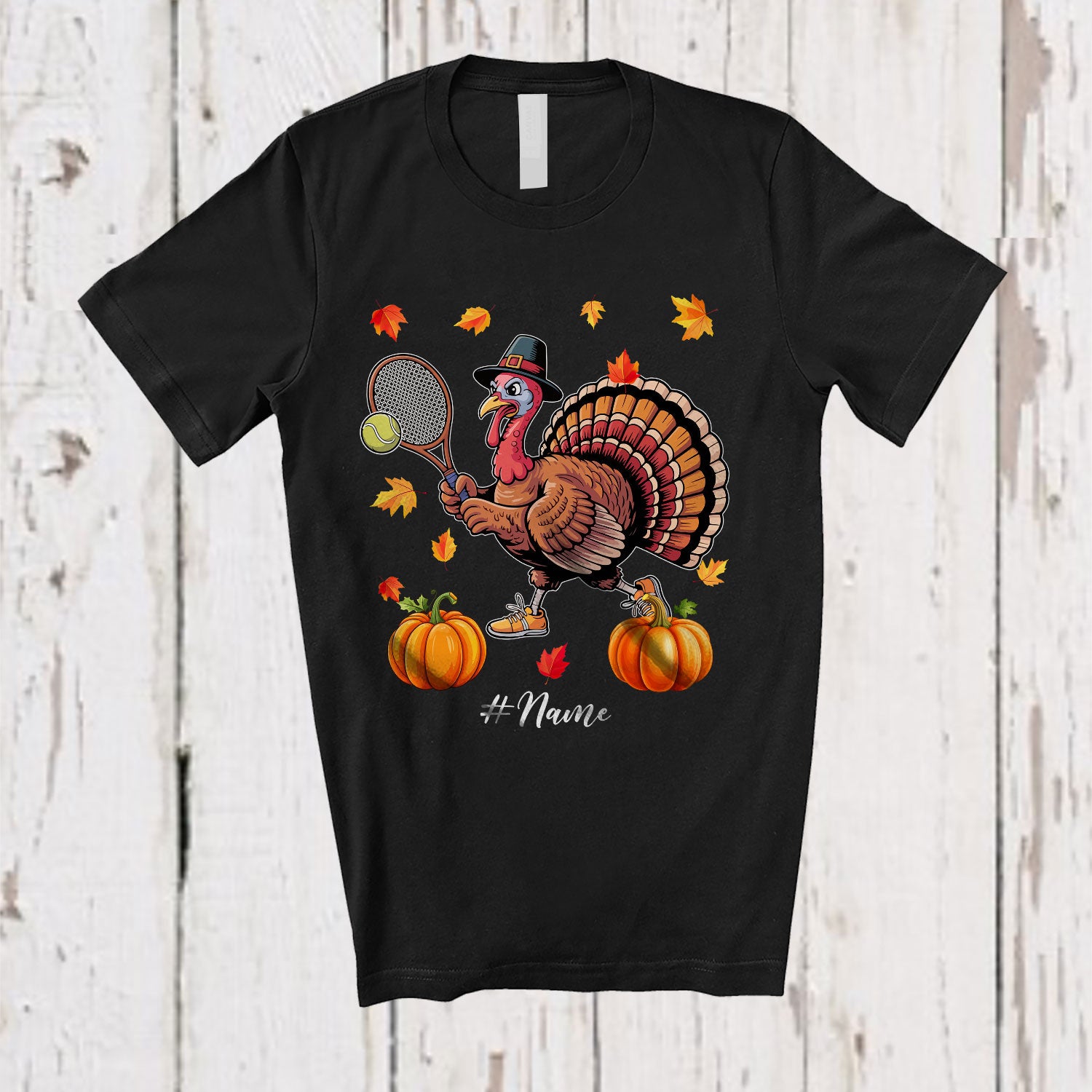 The Personalized Turkey Playing Tennis; Awesome Thanksgiving Fall Leaves Custom Name Player T-Shirt was built with people like you in mind. Something to keep you happy. Every. Single. Day.