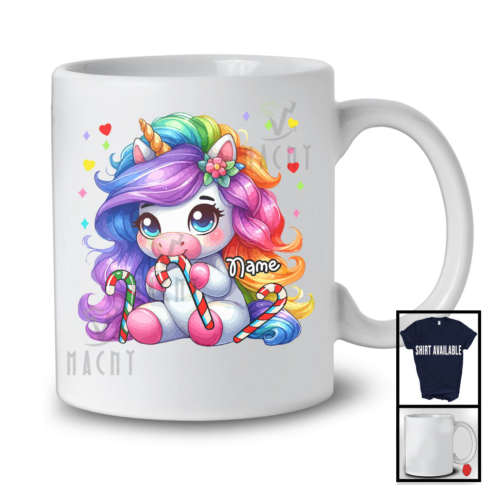 Personalized Unicorn Eating Candy Canes; Adorable Custom Name Boys Girls Candy Canes Lover T-Shirt