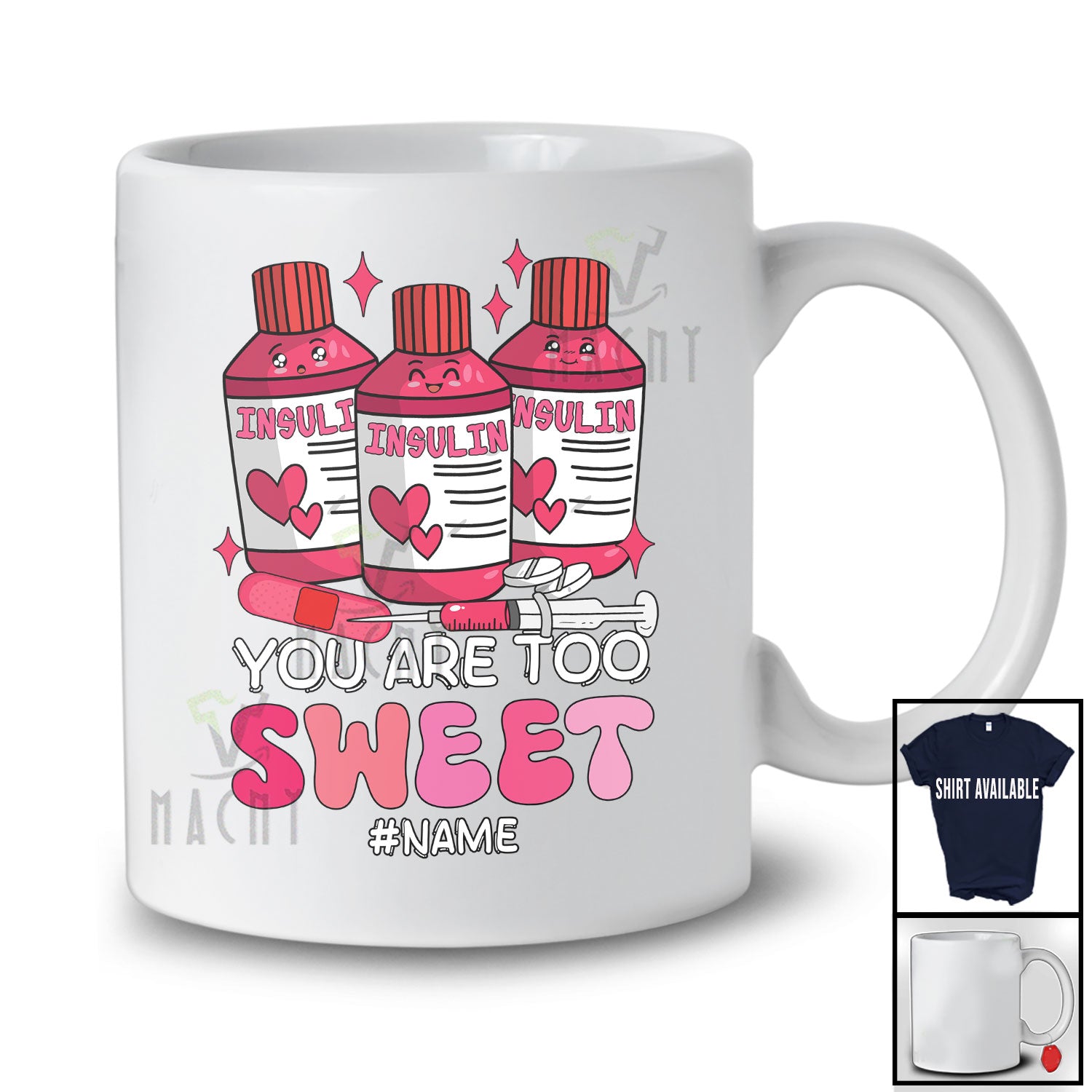• Personalized You Are Too Sweet; Amazing Valentine Insulin Diabetes; Custom Name Nurse T-Shirt. This cotton t-shirt is a durable staple product with a classic fit. One of the most popular items, it has a relaxed style made for everyday and casual wear.