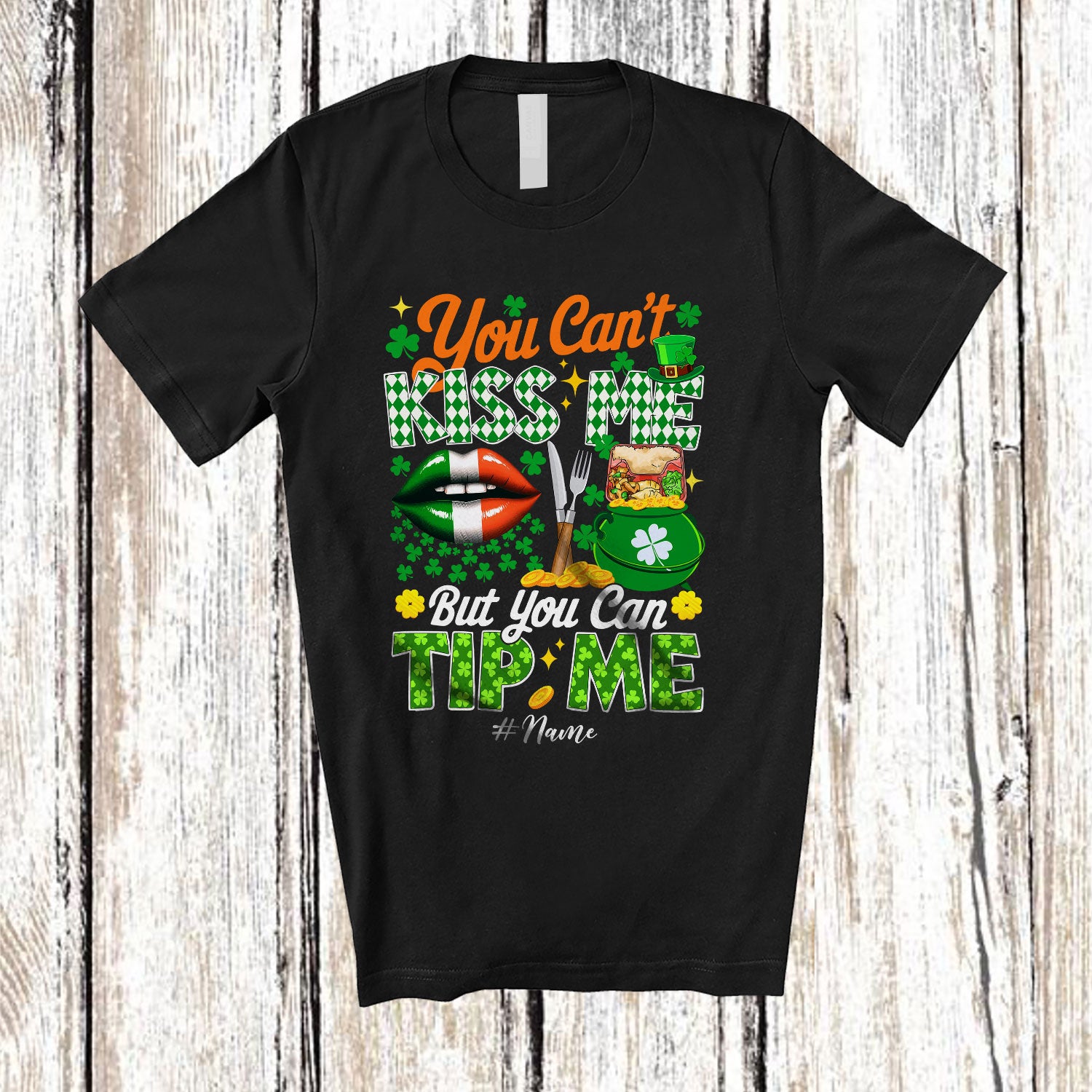 • Personalized You Can't Kiss Me Can Tip Me; Joyful St. Patrick's Day Custom Name Lunch Lady; Family T-Shirt. This cotton t-shirt is a durable staple product with a classic fit. One of the most popular items, it has a relaxed style made for everyday and casual wear.