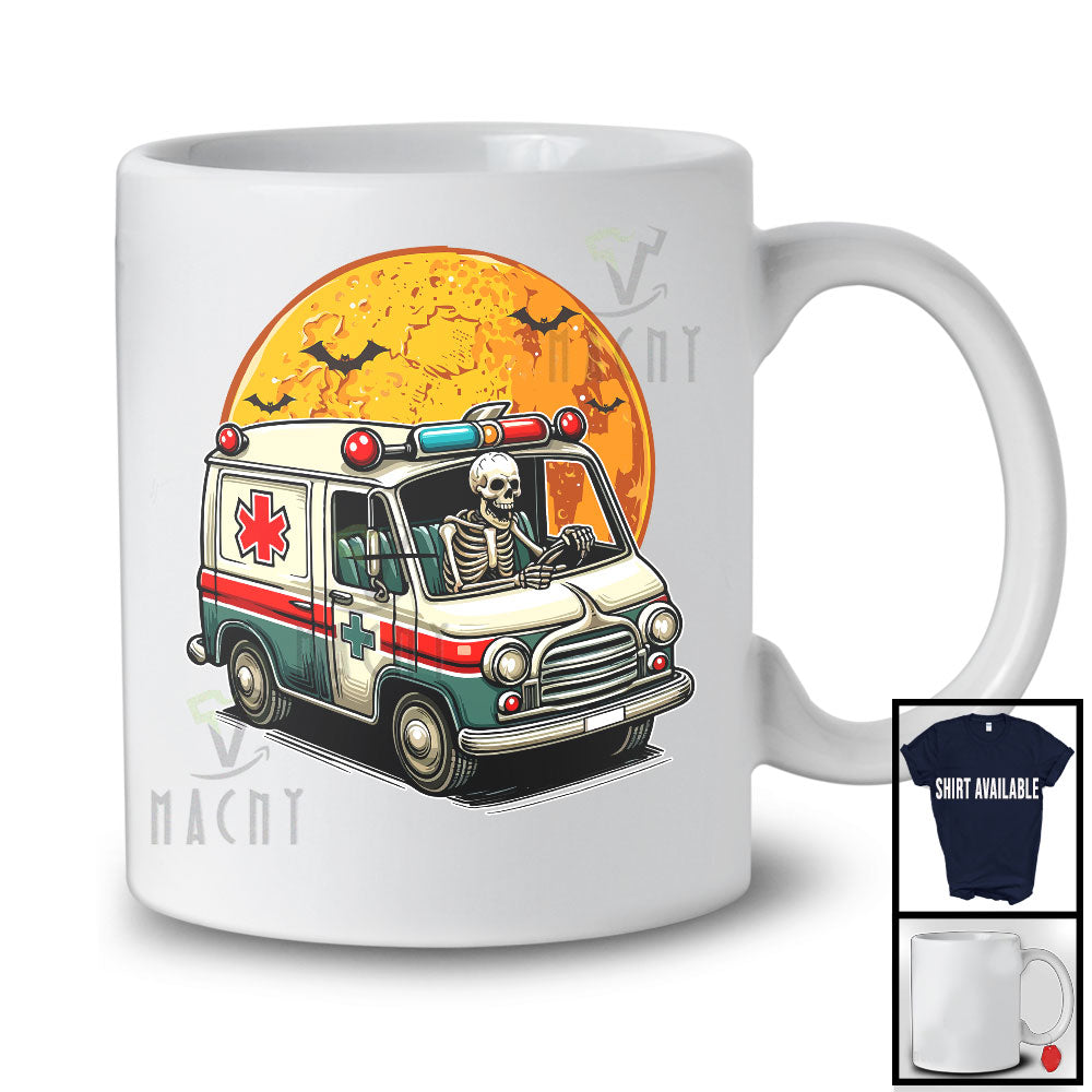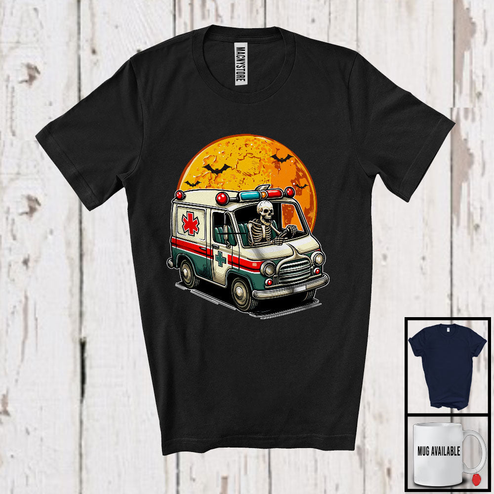 Skeleton Driving Ambulance, Joyful Halloween Ambulance Driver Lover, Matching Family Group T-Shirt