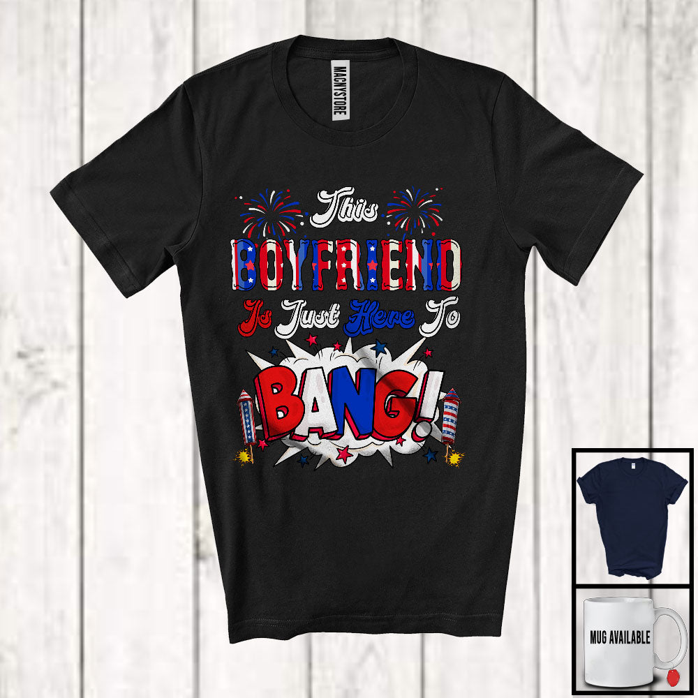 new MacnyStore - This Boyfriend Is Just Here To Bang, Awesome 4th Of July Fireworks American Flag, Couple Family T-Shirt – Macnystore