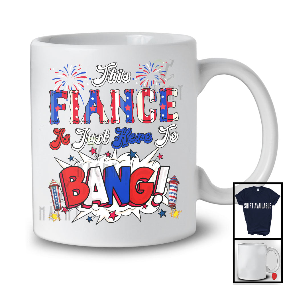 • This Fiance Is Just Here To Bang, Awesome 4th Of July Fireworks American Flag, Couple Family T-Shirt. This cotton t-shirt is a durable staple product with a classic fit. One of the most popular items, it has a relaxed style made for everyday and casual wear.
