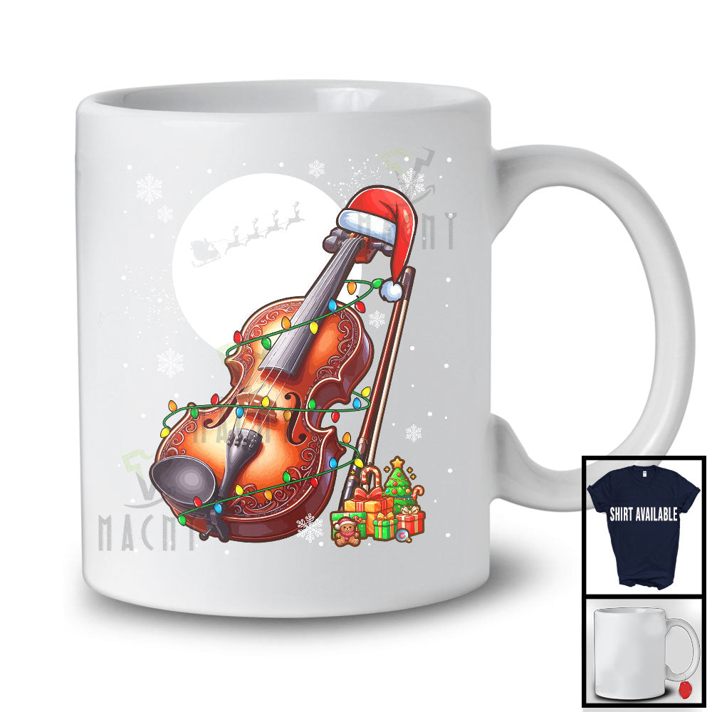 • Violin Santa; Amusing Christmas Lights Snowing Santa Violin Player; Musical Instruments T-Shirt. This cotton t-shirt is a durable staple product with a classic fit. One of the most popular items, it has a relaxed style made for everyday and casual wear.