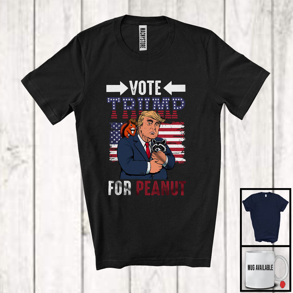 Vote Trump For Peanut; Humorous Election 2024 US President American Flag; Squirrel Patriotic T-Shirt