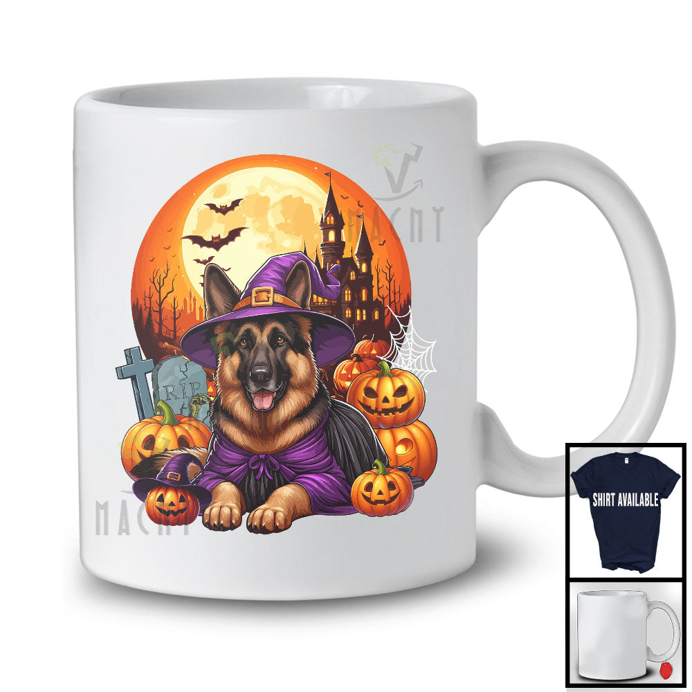 Witch German Shepherd With Pumpkins Moon, Happy Halloween Costume, Matching Family Group T-Shirt