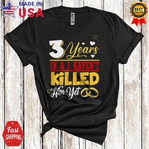 3 Years In And I Haven't Killed Him Yet Funny Happy Wedding Anniversary Matching Family Wife Couple T-Shirt