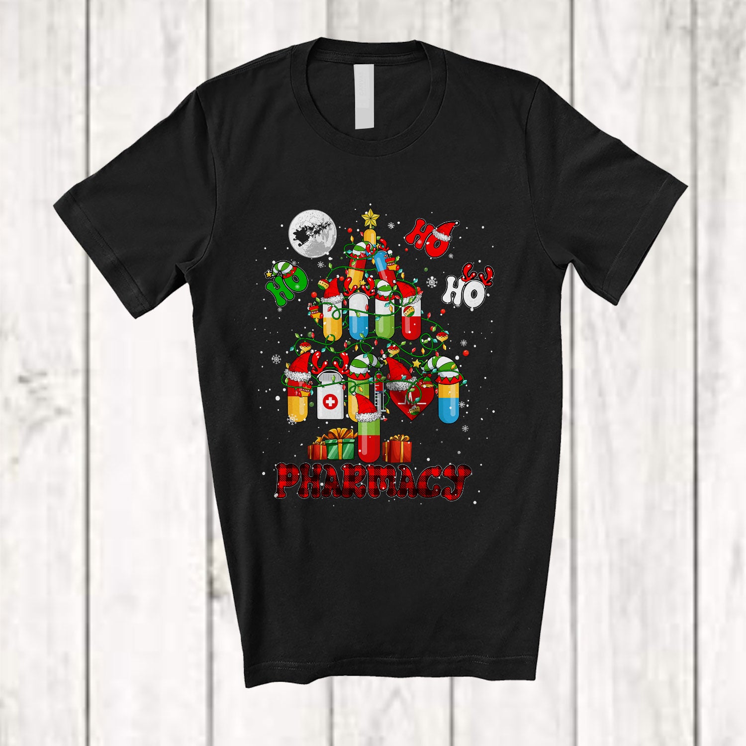 • 3Ho Pharmacy; Fantastic Christmas Tree Lights Plaid Pills; Nurse Doctor X-mas Family Group T-Shirt. This cotton t-shirt is a durable staple product with a classic fit. One of the most popular items, it has a relaxed style made for everyday and casual wear.