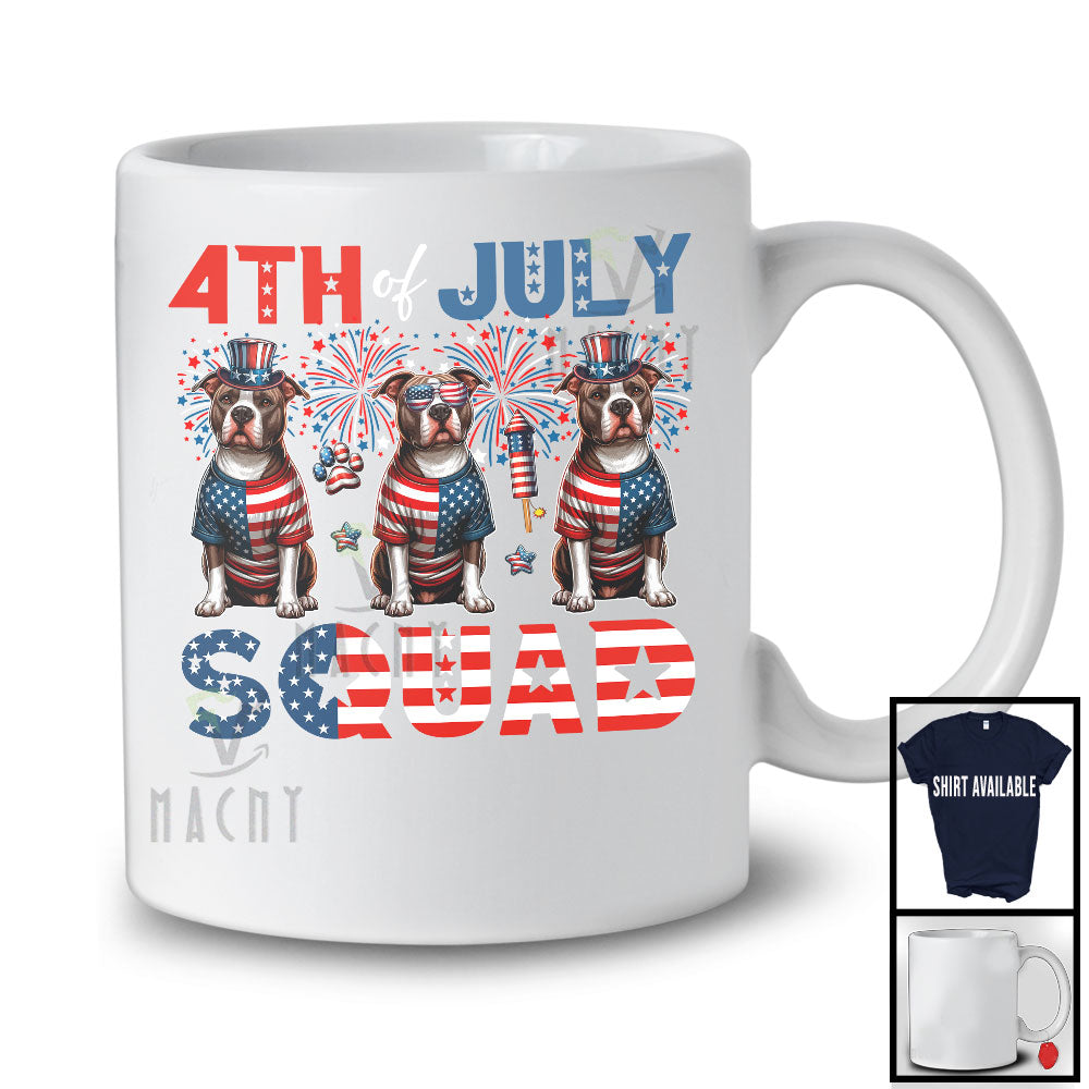 4th Of July Squad, Lovely Independence Day Three Pit Bulls, USA Flag Fireworks Patriotic T-Shirt. This cotton t-shirt is a durable staple product with a classic fit. One of the most popular items, it has a relaxed style made for everyday and casual wear.