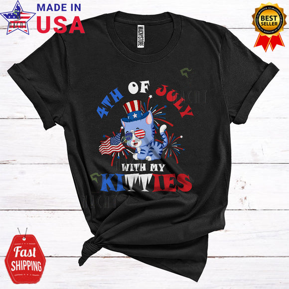 4th Of July With My Kitties Cute Cool American Flag Patriotic Proud Cat Lover T-Shirt