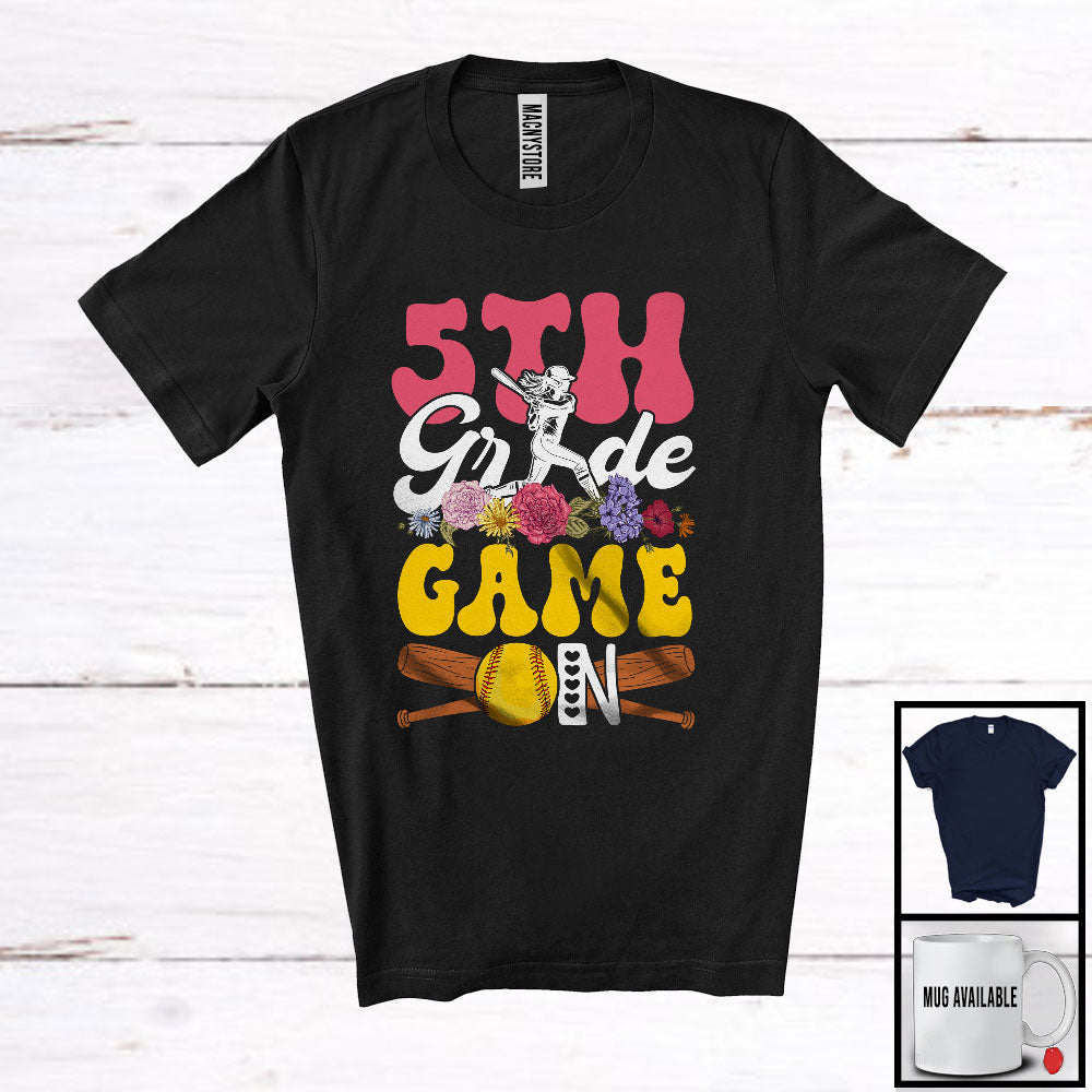 new MacnyStore - 5th Grade Game On; Joyful First Day Of School Flowers Softball Player; Students Teacher T-Shirt – Macnystore