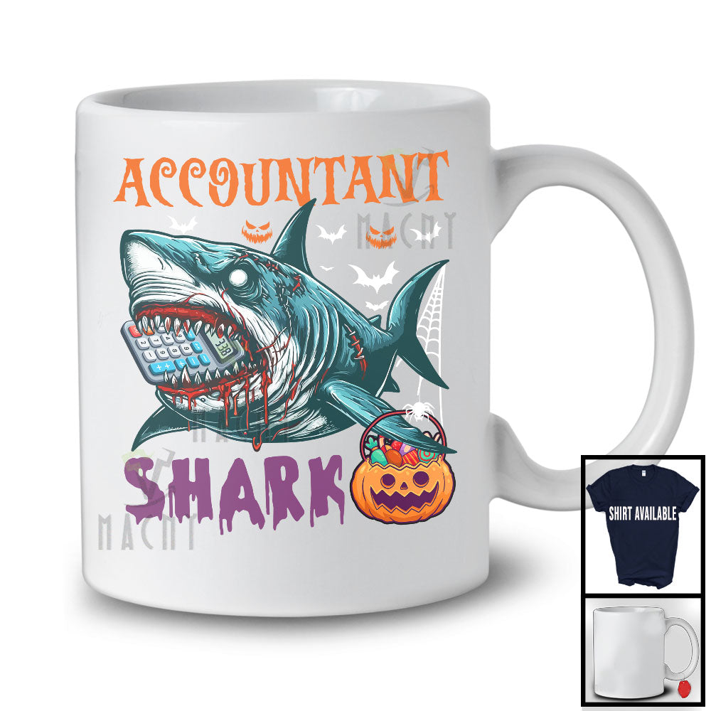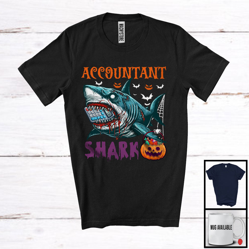new MacnyStore - Accountant Shark, Scary Halloween Costume Pumpkin Zombie Shark, Proud Careers Group T-Shirt – Macnystore
