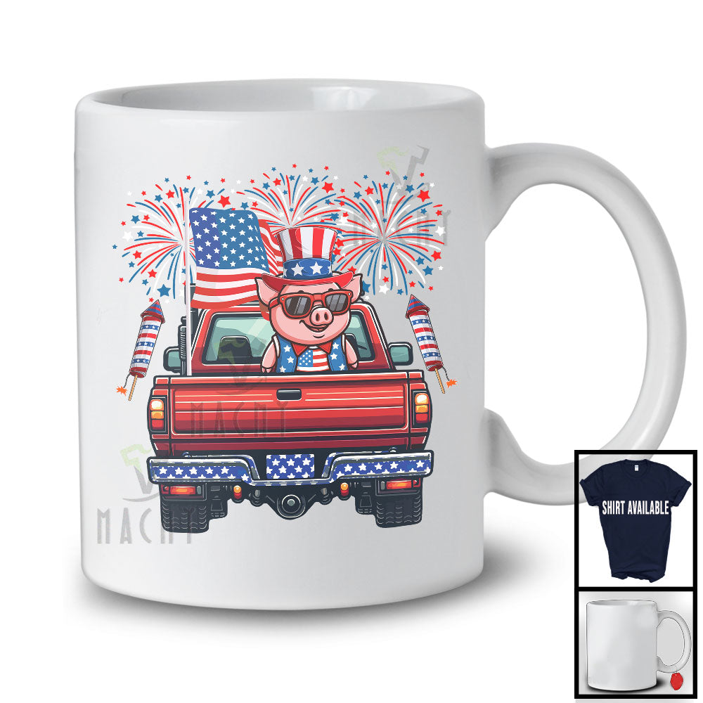 new MacnyStore - American Flag Pig On Pickup Truck, Cheerful 4th Of July Fireworks, Farm Animal Farmer Patriotic T-Shirt – Macnystore