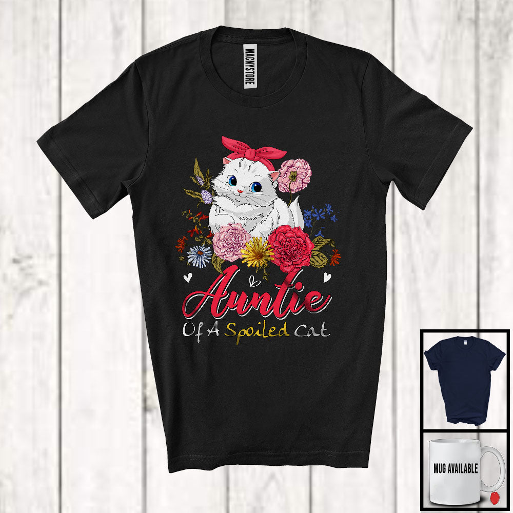 Auntie Of A Spoiled Cat, Lovely Mother's Day Flowers Kitten Owner Lover, Matching Family Group T-Shirt