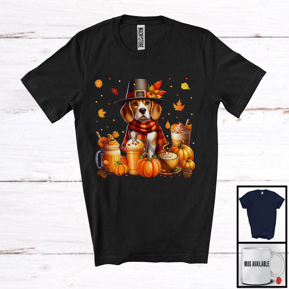 Beagle With Coffee Smoothie, Wonderful Thanksgiving Pumpkins Drinks Fall Leaves T-Shirt