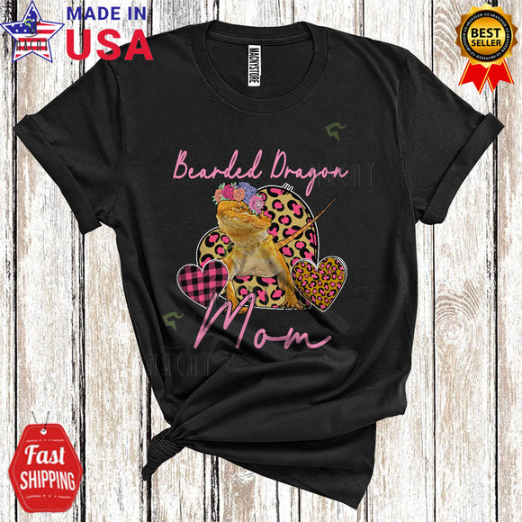 Bearded Dragon Mom Funny Cool Mother's Day Leopard Plaid Flowers Wild Animal Lover T-Shirt