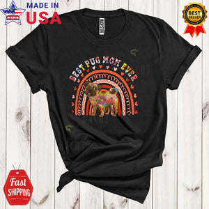 Best Pug Mom Ever Cute Floral Mother's Day Family Rainbow Animal Lover T-Shirt