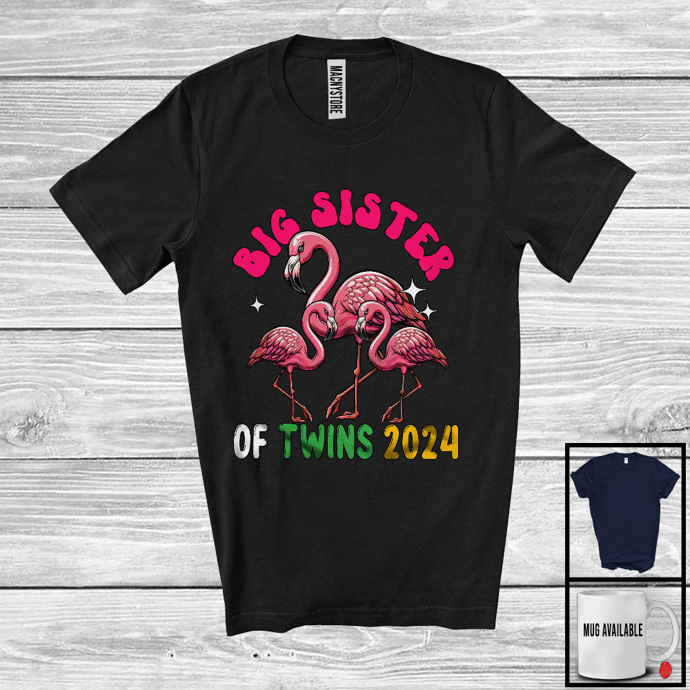 new MacnyStore - Big Sister Of Twins 2024; Awesome Pregnancy Announcement New Sister Flamingo; Family T-Shirt – Macnystore