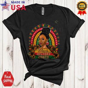 Black History Month Cool Proud Black Afro African Woman Girls Rainbow Sunflower Lover T-Shirt