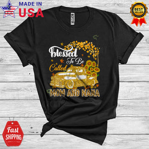 Blessed To Be Called Mom And Nana Cute Cool Mother's Day Leopard Sunflower On Pickup T-Shirt