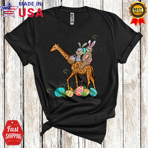 Bunny And Sloth Riding Giraffe Cool Cute Easter Egg Hunt Squad Matching Animal Lover T-Shirt