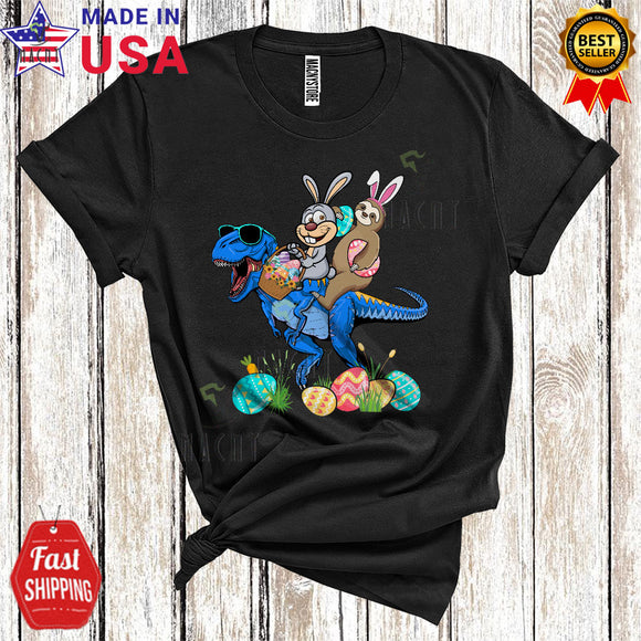Bunny And Sloth Riding T-Rex Cool Cute Easter Egg Hunt Squad Matching Animal Lover T-Shirt