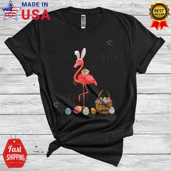 Bunny Flamingo With Easter Egg Basket Funny Cool Easter Day Egg Hunt Group Animal Lover T-Shirt