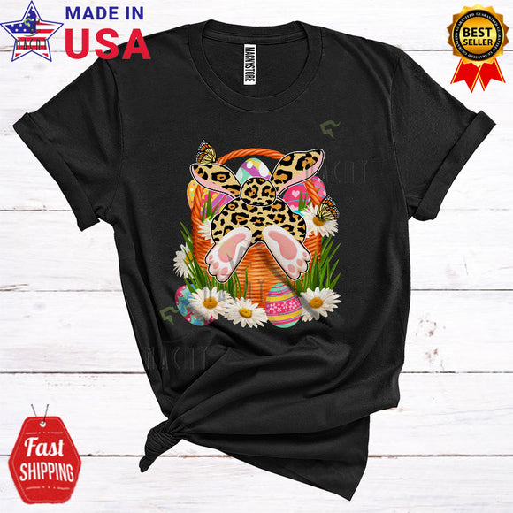 Bunny From Back In Easter Basket Cute Cool Leopard Bunny In Easter Egg Basket Egg Hunt Lover T-Shirt