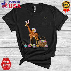 Bunny Giraffe With Easter Egg Basket Funny Cool Easter Day Egg Hunt Group Animal Lover T-Shirt