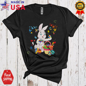 Bunny With Puzzle Easter Eggs Basket Cute Cool Easter Day Autism Awareness Bunny Egg Hunt Lover T-Shirt