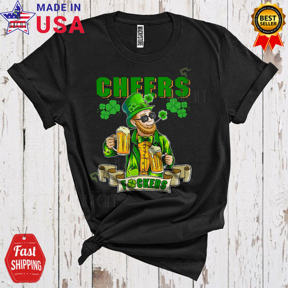 Cheers F*ckers Funny Happy St. Patrick's Day Irish Shamrocks Drunk Leprechaun Drinking Beer T-Shirt