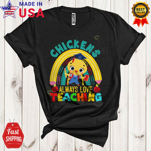 Chickens Always Love Teaching Cute Cool Back To School Teachers Chicken Pencil Rainbow T-Shirt