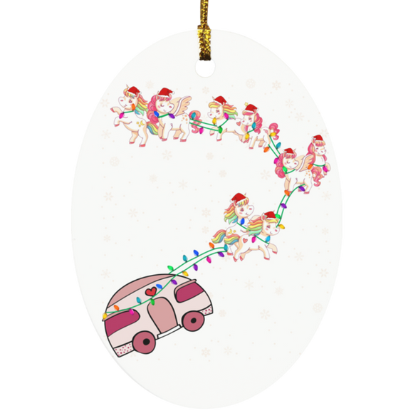 Christmas Ornament Funny Christmas Santa Unicorn Camping Lover Camper Ornament X-mas SUBORNO Oval Ornament