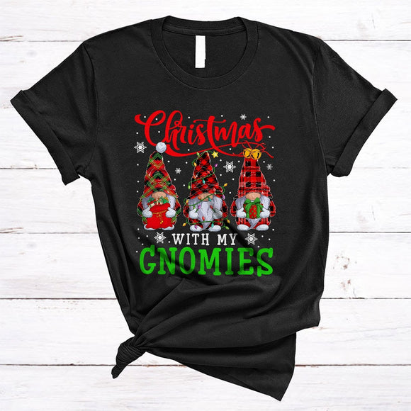Christmas With My Gnomies, Cute Red Plaid Three Gnomes Snow Around, Matching Family Group T-Shirt