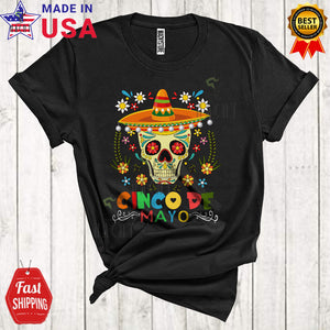 Cinco De Mayo Cute Cool Flowers Sugar Skull Wearing Sombrero Mexican Pride T-Shirt
