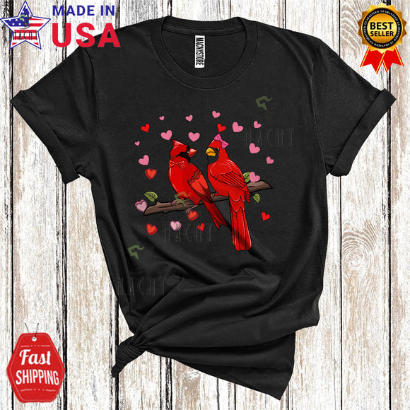 Couple Cardinal Birds Cool Cute Valentine's Day Hearts Matching Couple Bird Animal Lover T-Shirt