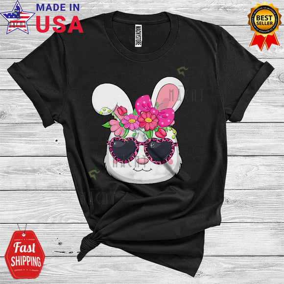Cute Bunny Face Wearing Leopard Sunglasses Cool Happy Easter Matching Bunny Eggs Hunt T-Shirt